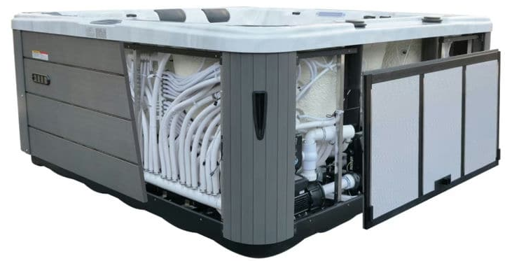 除此之外,裙邊板還有很多你意想不到的作用,其中一個(gè)是像不銹鋼支架一樣對(duì)整個(gè)spa戶外按摩浴缸起到結(jié)構(gòu)支撐的作用。另一個(gè)是可以保護(hù)浴缸內(nèi)部的零件和管道,避免外界的大風(fēng)、雨雪以及猛烈的陽光照射對(duì)零件造成不必要的損壞,還可以防止老鼠、昆蟲等動(dòng)物進(jìn)入內(nèi)部損壞管道和電線。最后賀濼的裙邊板安裝了鋁箔保溫層,可以進(jìn)一步提升戶外按摩浴缸的保溫性能,減少能源的消耗,為用戶節(jié)省電費(fèi)的支出。