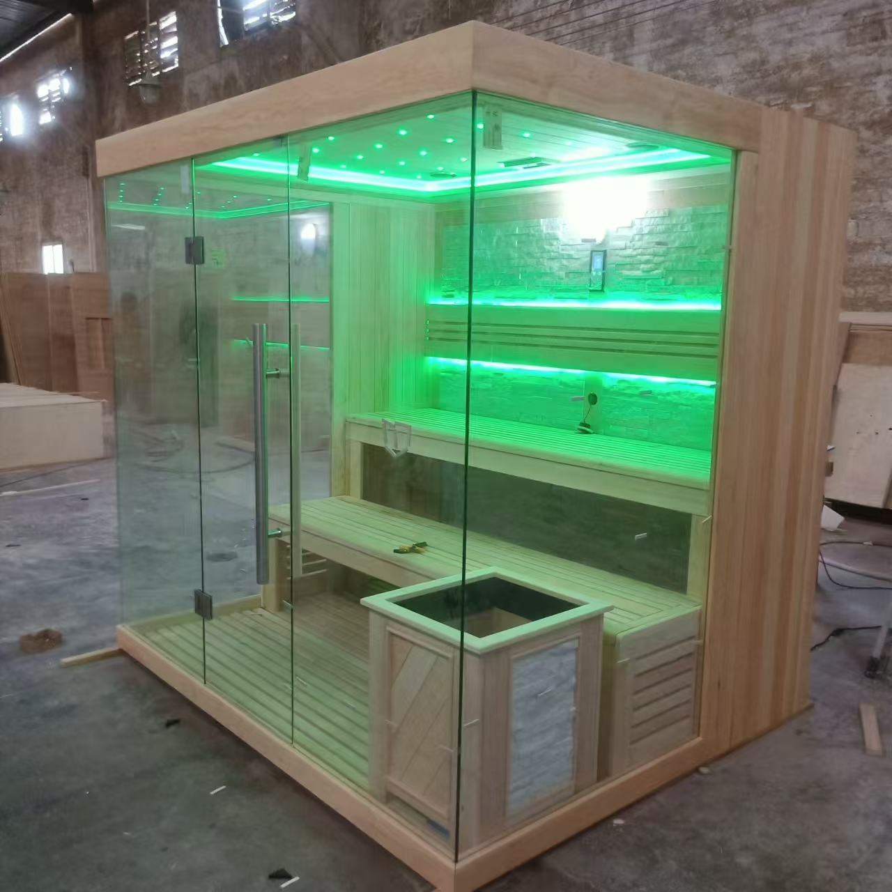 這是一款傳統(tǒng)型的室內(nèi)桑拿房,配有桑拿爐、桑拿石以及其桑拿配件,共有兩種尺寸可選。采用加拿大進(jìn)口鐵衫木,內(nèi)部使用文化石進(jìn)行裝飾,為整體空間增添自然而優(yōu)雅的氛圍。該汗蒸桑拿房的正側(cè)面采用的是有機(jī)玻璃材質(zhì),用戶在桑拿房內(nèi)還可擁有更開闊的視野。想要了解更多,請(qǐng)隨時(shí)聯(lián)系我們。